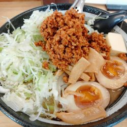 細麺に、スープはシンプルな醤油スープで、あれっ?てくらい、だいぶぬるいです。肉味噌を溶かすと辛味と風味が加わるものの、スープとの一体感がないかな。肉味噌自体は旨いと思います... 続きを見る