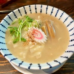 魚介塩らーめんは、珍しいスープですね。魚介の風味がよいのですが醤油のように複雑でなくシンプルながら美味しいです。麺も自家製とありスープによく合ってます。