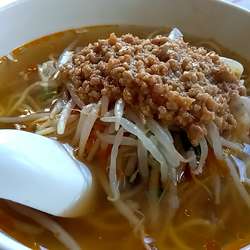 担々麺のスープは薄め。サラッと啜れるといえば聞こえはいいけど物足りなさは否めない。