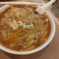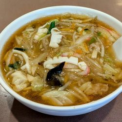 看板メニューのサンマーメンと焼ソバの食品サンプルが飾ってあります。大分古くてイメージは湧かないが、大きさはリアル。焼ソバに惹かれるも一人前とは思えないサイズにビビって、サンマーメンに。... 続きを見る