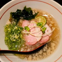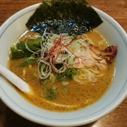 平日の夜10時に訪問。先客なし、後客1名。空いていたカウンター席に座り、置いてあるメニューからトップに掲載されている標題の品を口頭注文。待つこと数分で配膳された丼には、鶏チャーシュー2枚、茎わかめ、オニオンスライス、刻み青ネギ、糸唐辛子、海苔1枚、麺は中太縮れ麺、スープは濁白湯。メニューにはコラーゲンたっぷりと書いてありました。個人的には具材の組み合わせが好きです。麺の歯応え、... 続きを見る