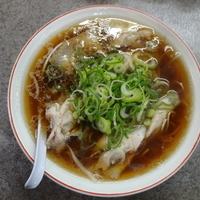 中細ストレート麺に醤油色の豚骨清湯醤油スープです。