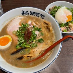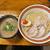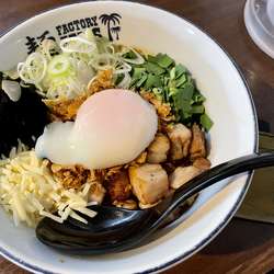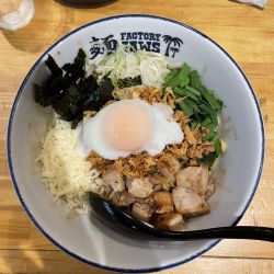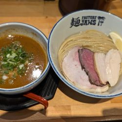思いのほか赤い、そして辛い、でも旨い。モチモチ太麺に魚介香るドロドロ激辛つけ汁が絡む。レモンの酸味もぶっ飛び、大汗かいてほぼ修行。〆のだしご飯はそのまま頂き修行完了。満足。