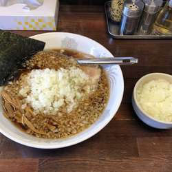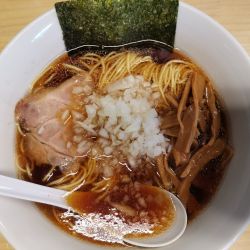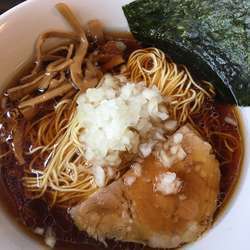 細切りチャーシュー、メンマ、玉ねぎ、半玉、小さい海苔。