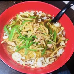 ゴマだれをふんだんに使用し、コクがあって、野菜と蒸し鶏を乗って、夏場に欠かせない一品です。