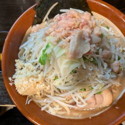 | 備考 | ・限定メニューは、公式ツイッターを参照。 ・メニュー毎、直前のコールが異なります。 【ラーメン・つけ麺】 麺・油を少なめで頼む際は、食券回収時に伝達。 ヤサイ、ニンニク、アブラ、カラメ、辛味(つけ麺のみ) 【汁無し蕎麦】 麺・野菜・油を少なめで頼む際は、食券回収時に伝達。 ニンニク、アブラ、カラメ、辛味、マヨネーズ(※野菜はおかわり制) 【辛麺】 麺を少なめで頼む際は、食券回収時に伝達。 ヤサイ、ニンニク、アブラ、カラメ、ホアジャオ、辛味玉 【冷やし中華】 麺・野菜・油を少なめで頼む際は、食券回収時に伝達。 ニンニク、カラメ、海老辛(※野菜はおかわり制) 【台湾混ぜ蕎麦】 麺を少なめで頼む際は、食券回収時に伝達。 ニンニク、アブラ、カラメ、ホアジャオ、マヨネーズ ※ 店内にFree Wi-Fiあり。 |