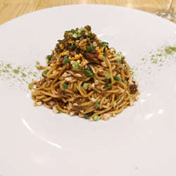 程よく弾力でウェーブがかった麺は香り高くスープにマッチ。