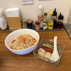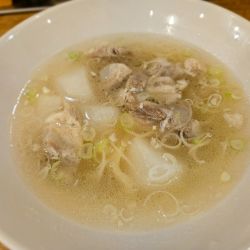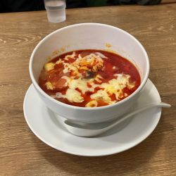 スープを一口。最初は酸味があってそのうち辛くなってきました。