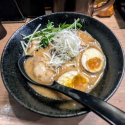 豚骨魚介らぁめん 800円。昔上野にあった戸みらい本舗の関係。上野店にはよく行ったがずいぶん昔なので記憶はほぼ無い。平日12時客ゼロとおもったら2階があるようだ。1階カウンターは客無し。券売機。ランチタイムは麺大盛りか小ライスサービス。麺大盛りで。厨房では寸胴に攪拌機を突っ込んでガリガリと回している。音からすると豚骨を粉砕しているのか。水菜、白髪ネギ、小さめチャーシュー1枚、太... 続きを見る