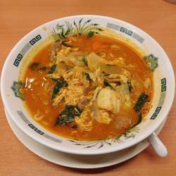 期間限定で復活したメニューだそう。ゆるめの餡はピリ辛でもほんのりした甘みもあり、なかなかおいしい。ラー油や豆板醤による辛味のようで、麻婆餡から豆腐を抜いて、かわりに温玉をトッピしたような趣もある。ベースの醤油の主張は適度で、尖りはない。