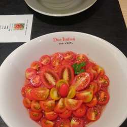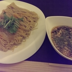 トマトのスープにバルサミコ酢?が加えられた甘めの冷製スープが美味い!6種類のトマトはそれぞれ風味が異なるので面白いです。麺もスープによく合っています。