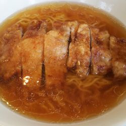 ベーシックな鶏出汁系醤油スープ。醤油のコク強く、化調風味。