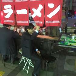 「ラーメン 700円」@屋台らーめん 雪虎の写真8.24(金)21:30 麺処 あす花さんでの飲み会の後、水道橋方面へ。帰ろうと思ってましたが、おゆさんから屋台ラーメンを食べてきなさいとの悪魔のささやき(命令)があり、麺友さんと訪問です。お酒の提供はありませんが、コンビニで買ってきて持ち込みOKとのことなので、近くのコンビニで買ったウーロンハイを飲みながら待つこと数分で着丼です。