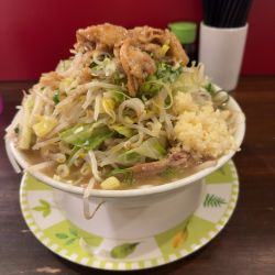| 備考 | 二郎系ラーメン店 店主はラーメン二郎・ラーメン大で修行された本格的二郎系。 ※食べ終わったら丼はカウンターの上に置き、卓上のふきんでテーブルを拭き、使用したティッシュは入口脇のゴミ箱へ捨てて下さい。 ※注文は1人1杯以上の注文(子供も含む) ※並んでいる人と待ち合わせをして合流する、車内で待っていて並んでいる人と合流するのは「割り込み行為」になりますので、全員が揃って並ぶように注意してください。 |