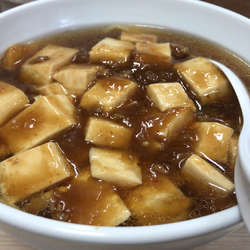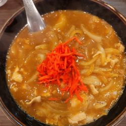 てゆかラーゎ単なる醤油味の『かけラーメン』に全然辛くない少量の挽肉と一緒に炒められた麻婆豆腐をのせただけのシロモノ...何気に軽く甘めのスープも相まって約2年前に食べた『トーフラーメン幸揚@さいたま市』の 『トーフラーメン』に良く似たお味...ただコチラにゎ刻みネギがトッピされ... 続きを見る