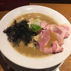 少し粘りのある白濁したスープは、牡蠣の旨味の強いこってり味😁トッピングされてる柑橘系の皮が良い仕事してるゼィ(๑•̀ㅂ•́)و⭐︎