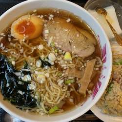 席に座りランチメニューから、ラーメン&半チャーハン750円を注文。