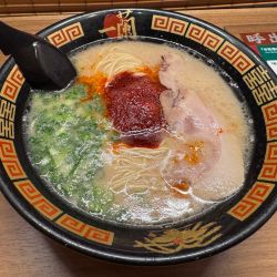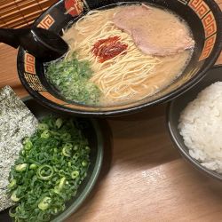 朝ラーで。24時間営業。辛さは10倍に。まろやかな豚骨スープ、極細ストレート麺。流石の一杯でした。ご馳走様でした。