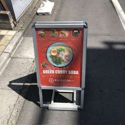 カウンター席に座りグリーンカレーソバを注文。