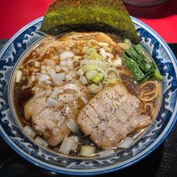この一品は「本州では流通の少ない希少な知床鶏をじっくり炊いてらうす昆布の出汁と合わせました。低温調理チャーシューの豚肩ロース鶏ムネ肉の二種のチャーシュー付けの一杯になります。」