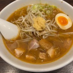すすきの店は混んでいるので手稲店へ。あえて昼過ぎを狙いましたが、駐車場はほぼ満車。メニューは迷わず表題を。濃厚味噌がベースのスープは濃すぎず良い感じ。炒めたモヤシと甘めの脂を纏ったコロチャーも旨い。縮れ麺はスープリフトする良い感じのタイプ。途中で生姜を混ぜれば爽やかな感じに一変。最後はお酢をひと回しして完飲完食。大変美味しくいただきました。ごちそうさまでした。