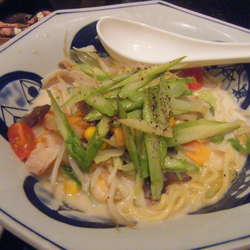 店は新橋駅のすぐ近く。店内は広くカウンター13席とテーブル24席。店員は厨房が黒人男性と東南アジア系女性、接客が中国系女性2人の多国籍外人チーム4人で切盛り。ランチ時で客入りは10人ほど。