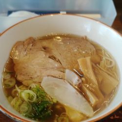 さておき表題をオーダー、暫しで着丼。透き通った綺麗なスープに大判チャーシュー、そして何と言っても鯛の切身が目を引きます!