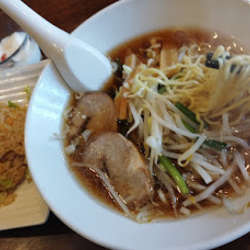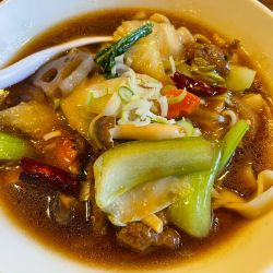 スープは、醤油ベースのとろみある熱々。