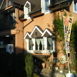 おしゃれなカフェだったはずのこちらにラーメンの幟が立っていた。