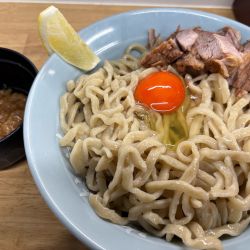 檸檬と濃~いオレンジ色の生卵と叉焼だけという極シンプルな構成です。