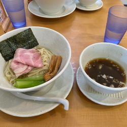 鶏そば(780円)を。スープは、無化調かな、穏やかな仕上がり。この系統にしては、油分は控えめな印象。温度は低めでの提供。