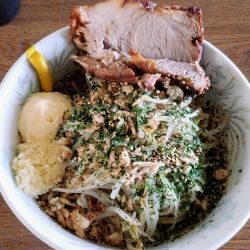 | 備考 | <無料トッピング> 野菜(入ってます)マシ・マシマシ アブラ マシ・マシマシ カラメ(醤油ダレ)マシ・マシマシ ニンニク(入ってます)マシ・マシマシ・抜き (店員さんがホワイトボード持参で注文聴いてくる) |