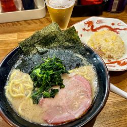海苔3枚、ほうれん草、チャーシューのビジュアル。スープには少量の刻みネギが入っている。まずはスープからいただく、さらりとした口当たクリーミーな感じで、味わいは癖の無い純然とした豚骨の旨味がまずは広がり、そこに醤油タレの風合いよまろやかな味わいに丁度良い塩加減が広がる、脂の味わいも丁度良い。麺は中太麺の長方形の断面、茹で加減も丁度良くシコッと歯切れで食感が良く、噛むと小麦の風味の... 続きを見る