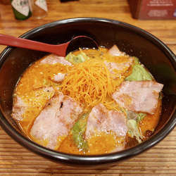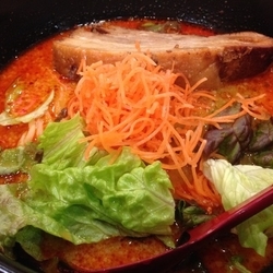 サラサラ豚骨に5辛のHotな辛味が刺激するスープ