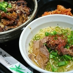 そこまで暑いって気候でもなく、店内のクーラーもあり、冷やし麺を一人前食べる気も出ず、カルビ丼とセットに。出来ればカルビ丼もハーフがあればいいのにと思いながらも、大食いの過去を思い出しながら喰らう。